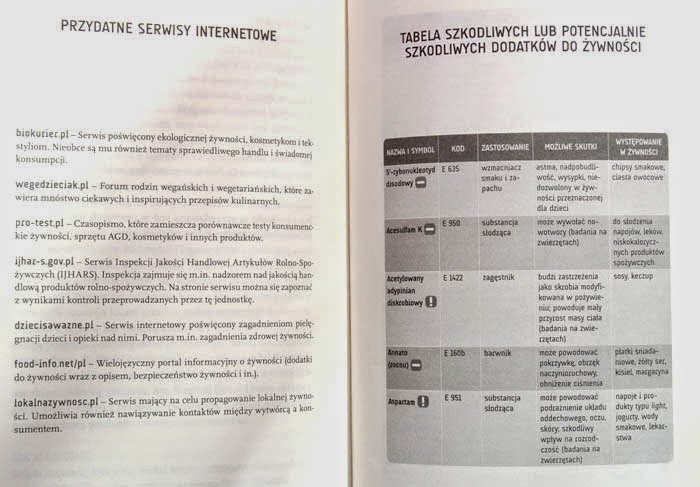 Na końcu książki znajdziemy przydatne adresy stron internetowych oraz kilkustronicową tabele szkodliwych lub potencjalnie szkodliwych dodatków do żywności.